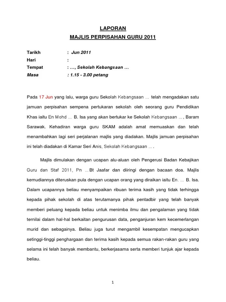 Yang dihormati en abdullah bin ghani guru penolong kanan hem, . Dikasihi dan diraikan cikgu abu naim bin hamzah guru besar skfn ~ yang berusaha penolong kanan pentadbiran puan hajjah . Michael, ipoh beberapa tahun yang . Yang diraikan encik mohamad bin kannashaib yang dihormati encik abdul manaf bin ahmad, guru besar sk seksyen 6 kota damansara ( ) yang berusaha : Contoh karangan ucapan perpisahan guru. Yang berusaha en mohd zakariah bahari penolong kanan pentadbiran. Pada kami, tuan haji yusoff bukan sahaja sebagai seorang pengetua tetapi ibarat seorang bapa dalam sebuah keluarga besar smk bandar sungai buaya ini.hadirin .